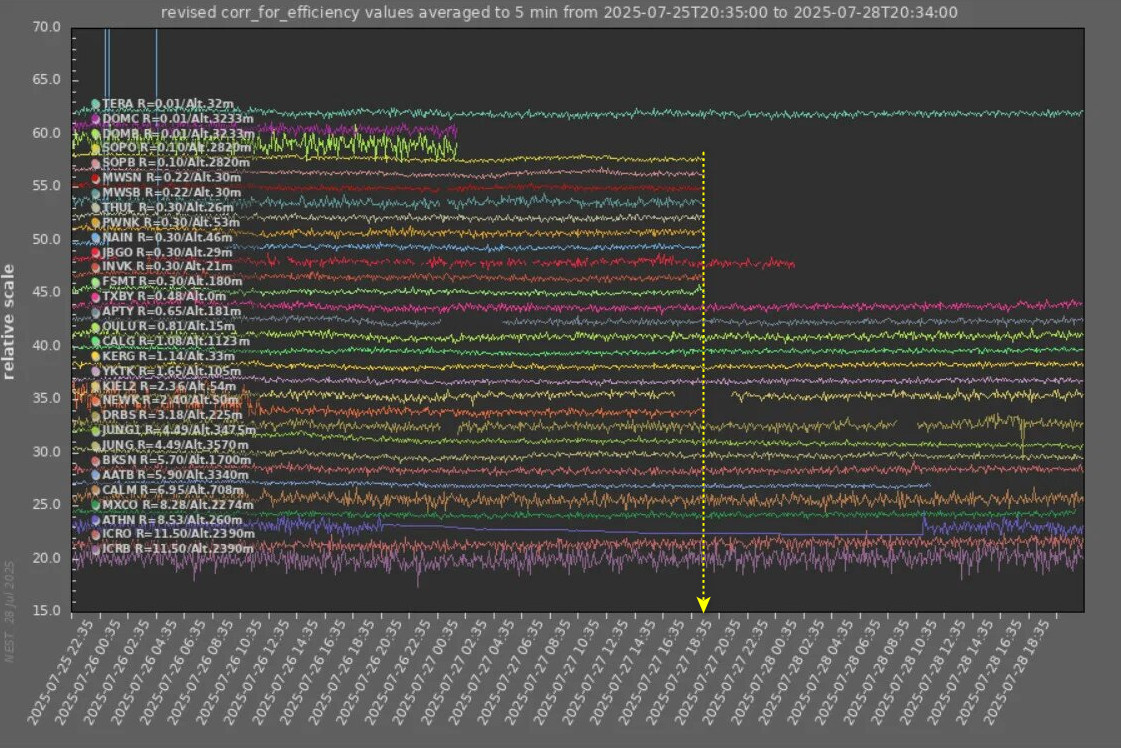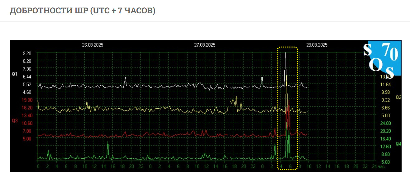Прохождение крупной метки по шумановскому диапазону , прогнозное окно крупного события — 21:50 по Гринвичу, 28.08.2025 года. Физически не успеваю проработать. Се-ля-ви.