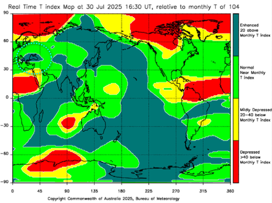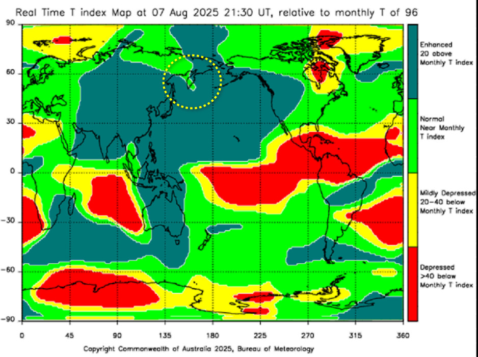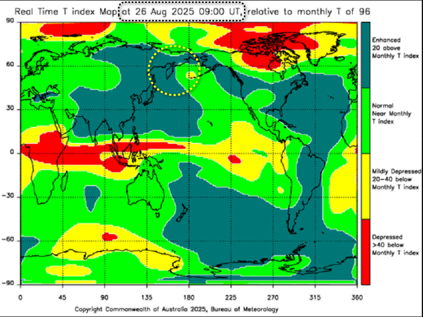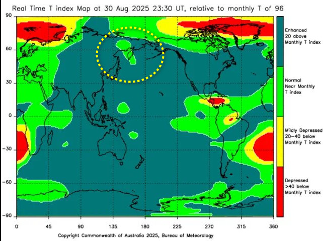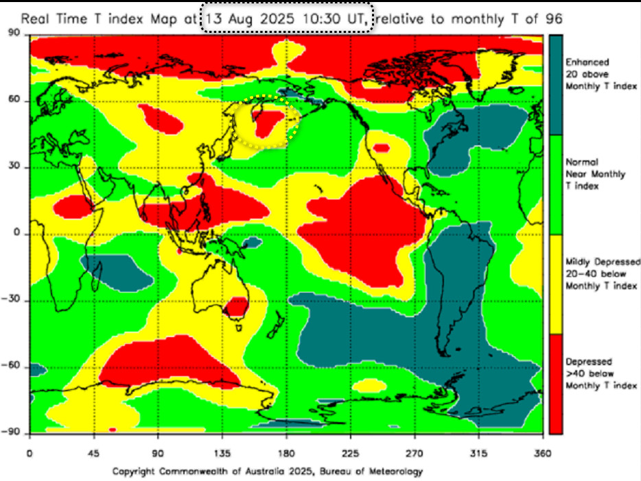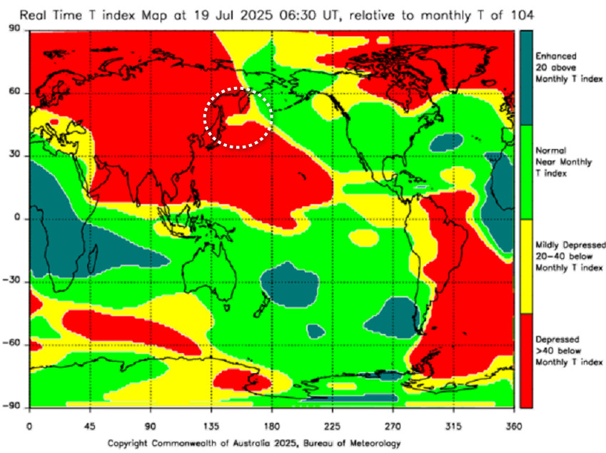 Небольшой анализ события на Камчатке, происшедшего 20 июля 2025 года, 06:49 по Гринвичу. Т-индекс , его аномалия по Камчатке за сутки , работает как датчик. Вы можете загуглить на австралийском сайте, и сами всё рассмотреть и, при подобной аномалии — предупредить своих знакомых. Похожие маркеры Т-индекса я выкладывал ниже. Просьба ознакомиться.