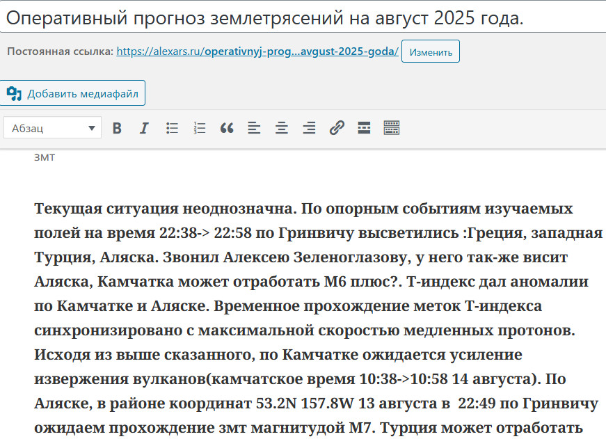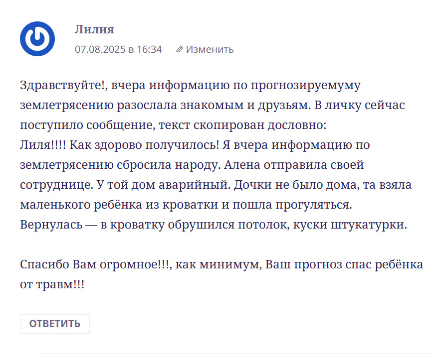Таки страничка с прогнозами https://alexars.ru/operativnyj-prognoz-zemletrjasenij-na-avgust-2025-goda/