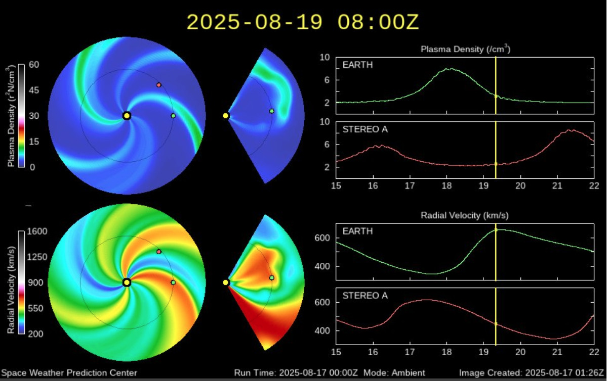 Текущая временная точка имеет суточную синхронизацию по полям мпз, но)) Возмущения имеют слабую амплитуду, и не все поля синхронизированы по меткам . Отсутствует синхронизация с прохождением текущего потока солнечного ветра текущей орбиты Земля. Отсутствие резонанса межпланетного магнитного поля.Исходя из выше перечисленного, прогноз пролонгируется на 08:00 по Гринвичу 19 августа, 20:00 19 августа время по Камчатке.