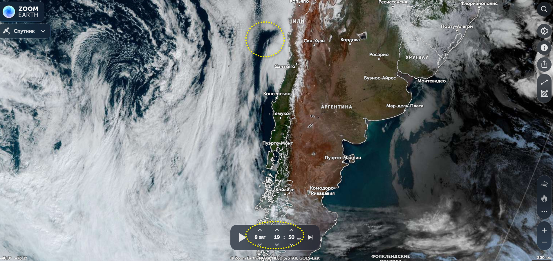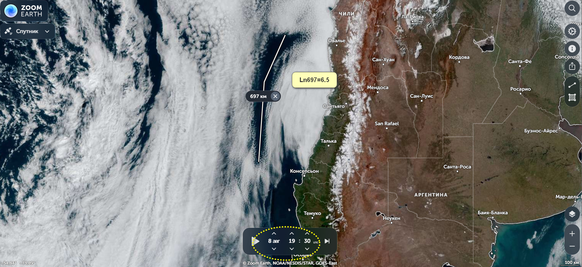 Контрольная точка по Чили — 14:52 по Гринвичу 17.08.2025 года))