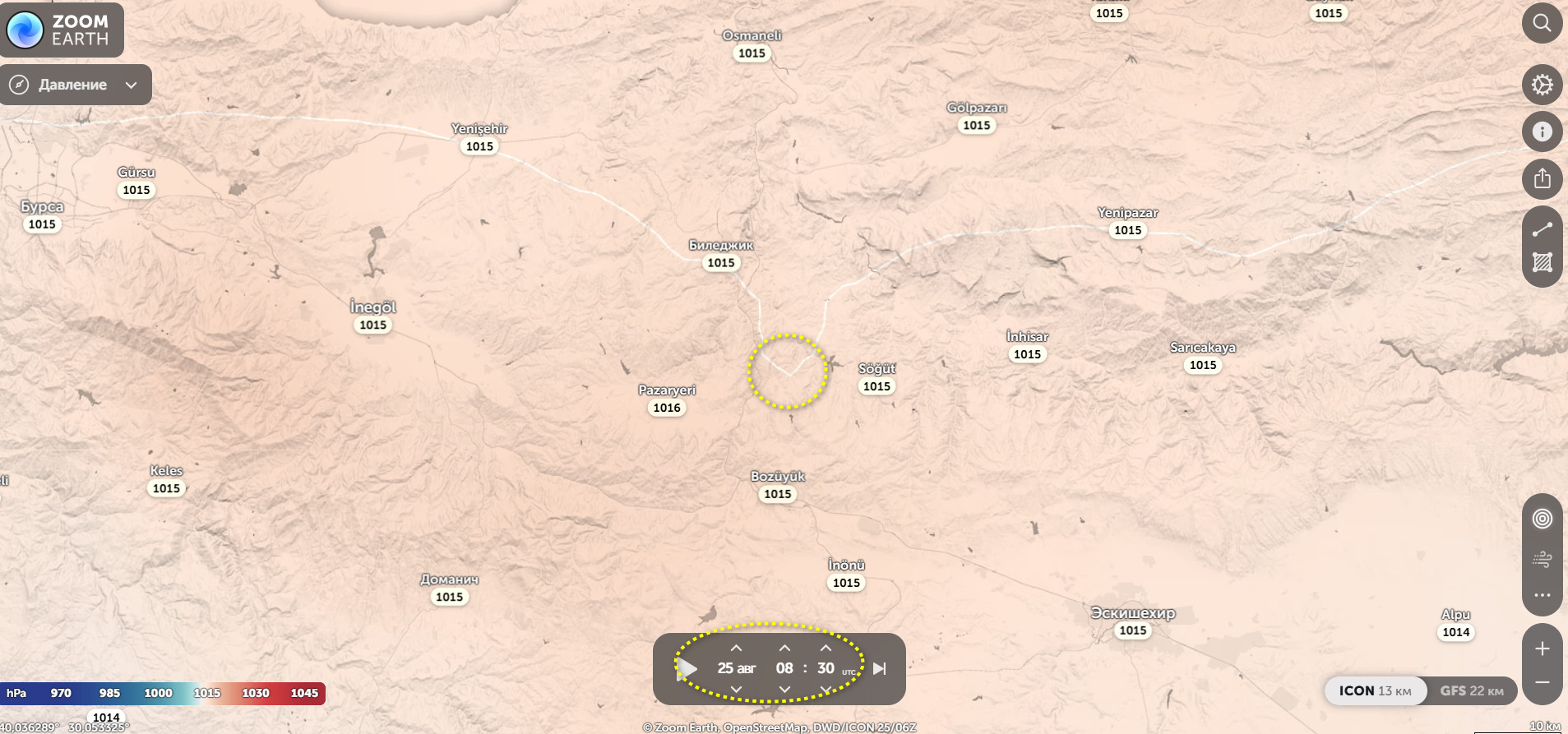 Давно за полночь, Западная Турция пролонгируется на 21:40 по Гринвичу 28.08.2025 года , магнитуда M6.7 , район координат 40.02N 30.06Е.