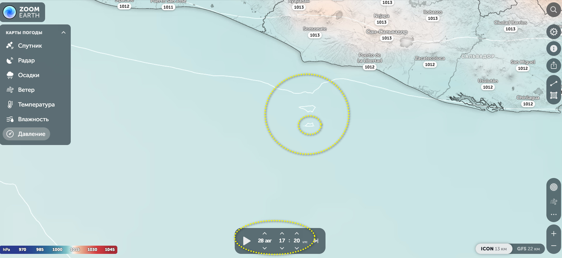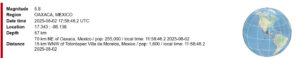 Крайний прогноз на август. У побережья Сальвадора, район координат 13N 89.7W, 31.08.2025 года, 22:12 по Гринвичу, магнитуда М6.5 МИНУС.