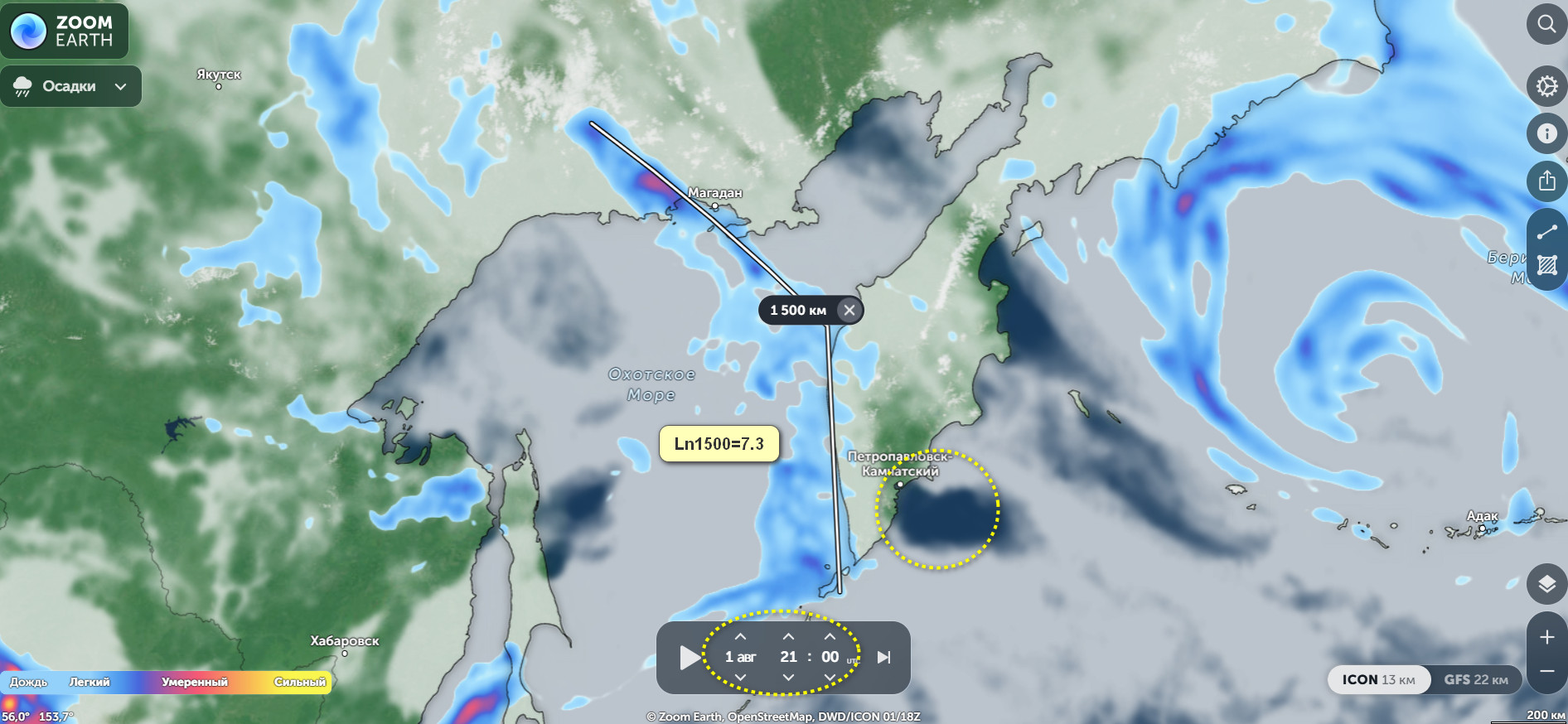 На 20:00 по Гринвичу 12.08. по Камчатке высветилась аномалия, пока непонятно, что за ней стоит. Будем посмотреть ))