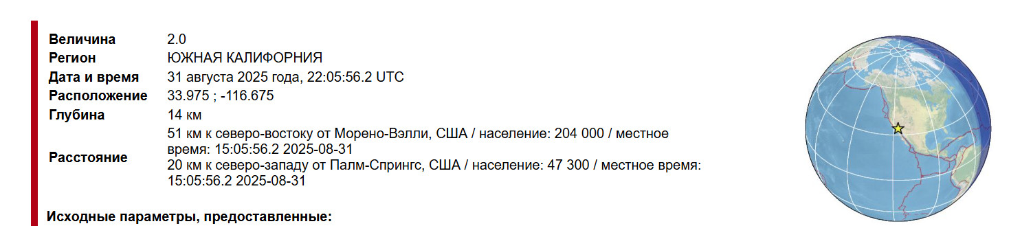 В указанное время прошло маркерное событие по Южной Калифорнии.