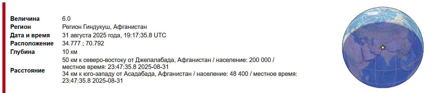 31.08. М6.0. Афганистан, пропуск, неверно расшифровано точное время.