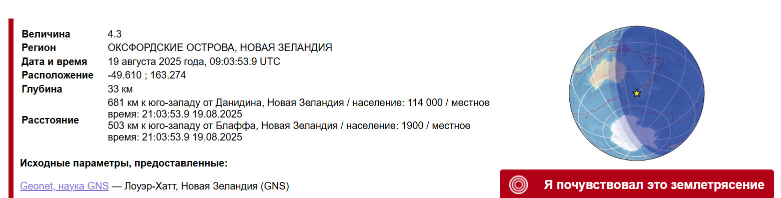Новая Зеландия отработала мелким событием.
