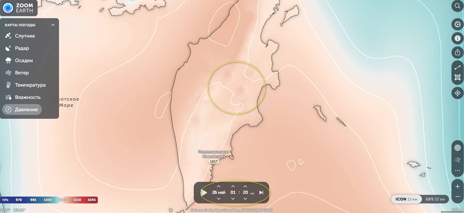 Камчатка отдыхает, Африка отработала в прогнозном окне.