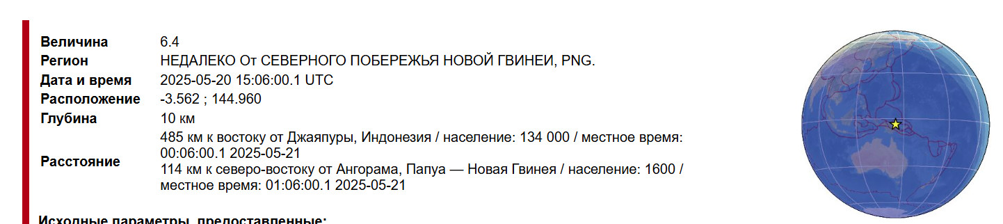 На 15:06 20.05. отработала Новая Гвинея, не было расшифровано точное временное окно.