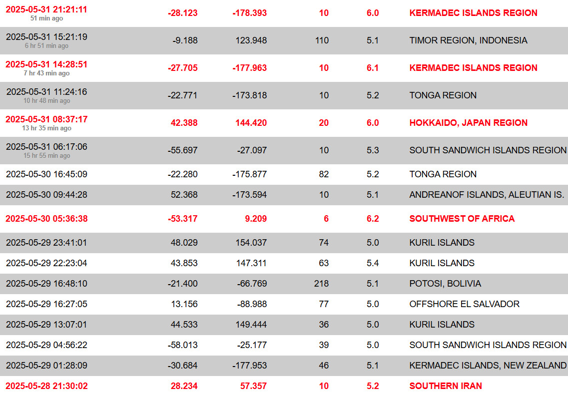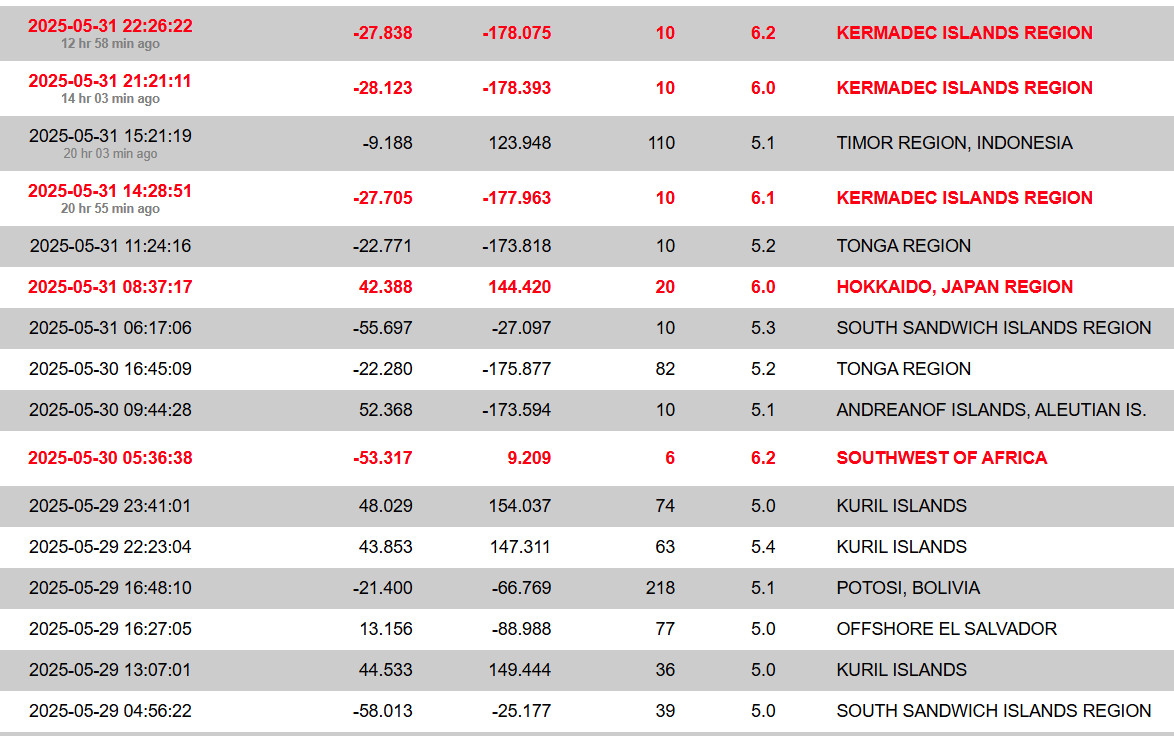 31.05. нежданчик: Хоккайдо , Япония, три змт по Кермадек.