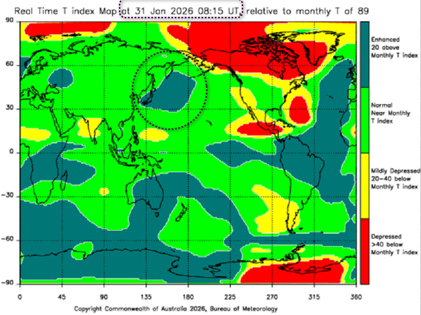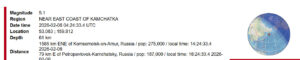 В фокусе Камчатка ,район координат 50.7N 161.5Е, на 06.02.2026 года, 08:15 по Гринвичу(20:15 местное время?) с магнитудой М6.6?! Также фиксируются метки опорных событий изучаемых гармоник с ростом положения гипоцентра к поверхности Земли, от 70 км за 31 сутки, 40км за 26 суток и серия пятёрок от 33 до 10 км от поверхности Земли за несколько текущих суток. Будем посмотреть.