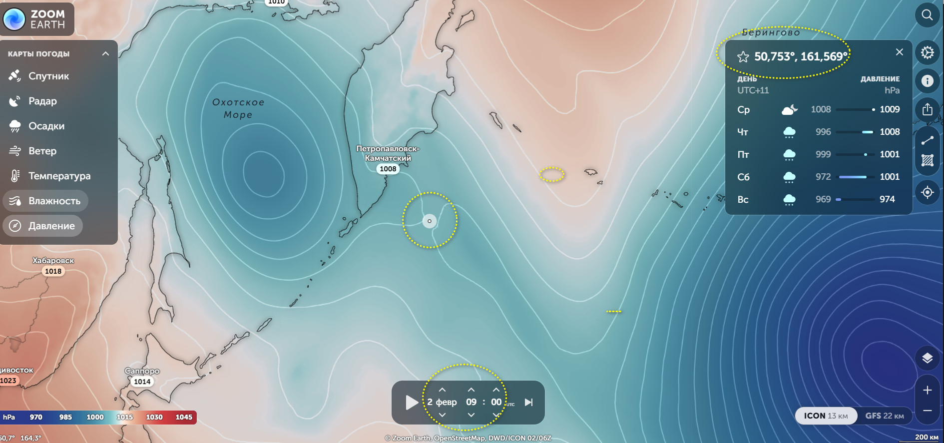 По Камчатке висит вторая контрольная точка( первая по времени прохождения) 22:06 по Гринвичу 05.02.2026 года( 10:06 камчатского времени 06.02.2026 года) Не всё так просто, есть взаимоисключающие себя метки.Будем посмотреть))