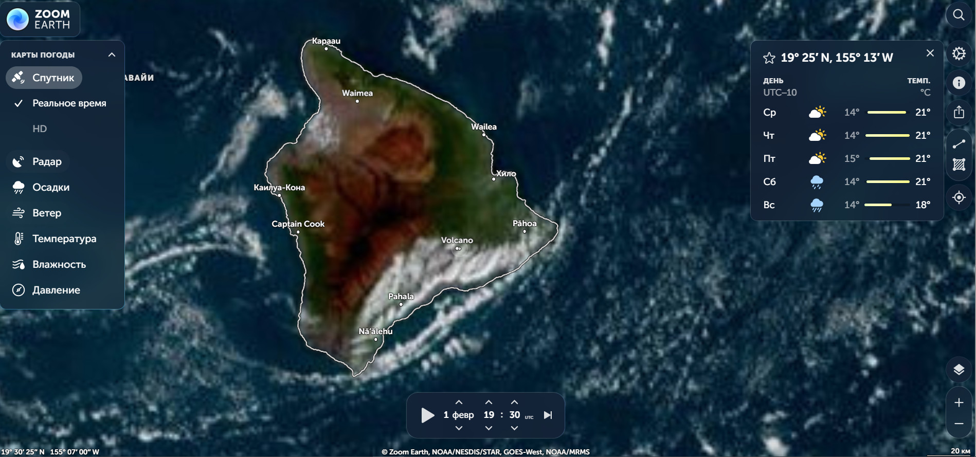 На 5 февраля , 14:26 по Гринвичу, намечается мощный выброс вулкана Килауэа, Гавайи.
