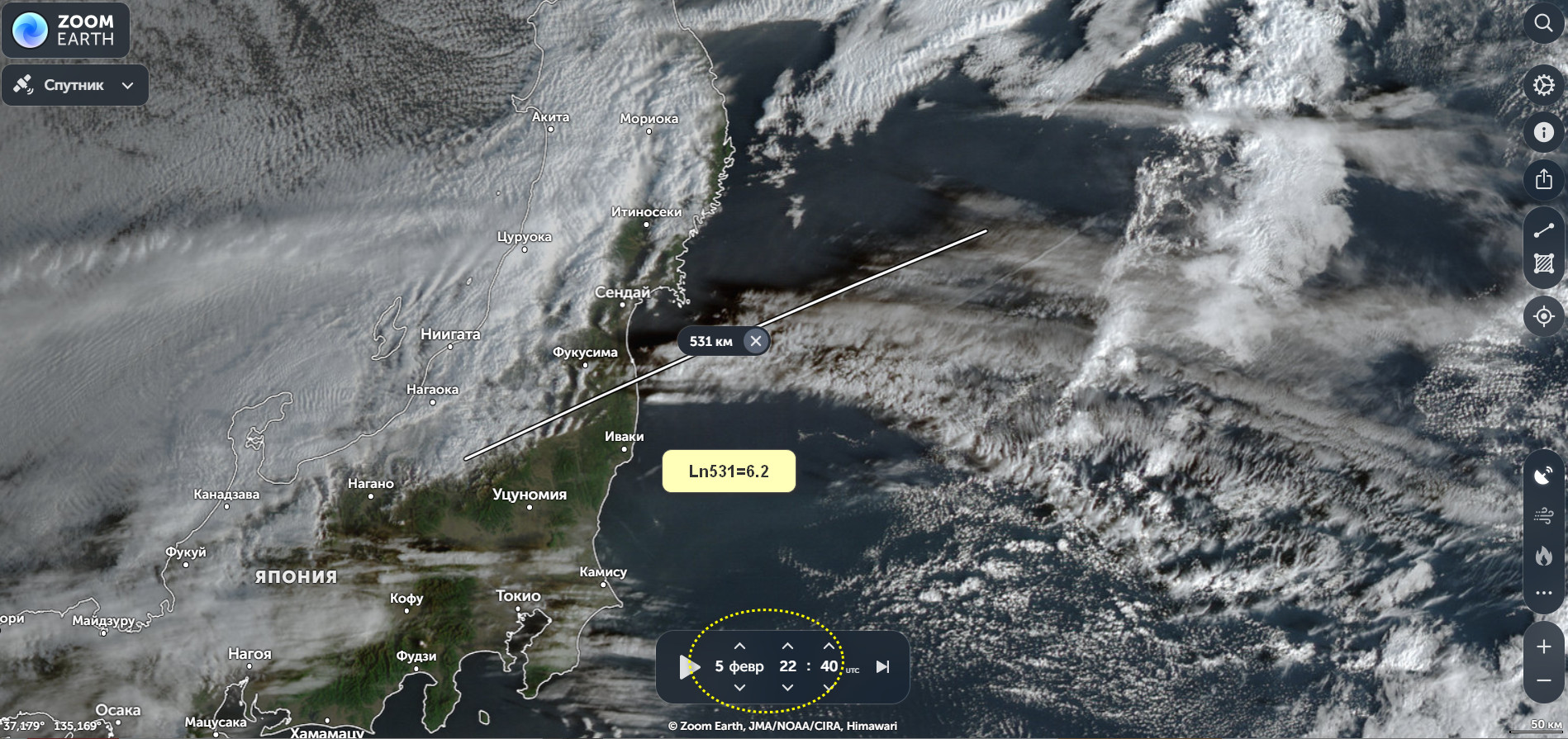 В фокусе Япония, восточное Хонсю , район координат 39.7N 141.8E, 08.02.2026 года, 22:49 по Гринвичу, магнитуда в пределах М6.2.