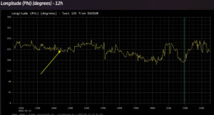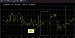 Угол Фи по широте и долготе определяет текущее положение гравиворонки(геомагнитной трубки). Гравиворонка , её текущее положение определяет динамическое изменение(дифференцирование) векторной величины ускорения G=dа/dt, (G=9.81m/сек.кв- ускорение свободного падения) по времени, или третья производная от скорости. В данной динамической точке схлопывается эмполе . Текущее положение угла Фи физически указывает на радиус-вектор , направленный в противоположную сторону от направления движения барицентра Земли. Возможны и другие варианты ?!