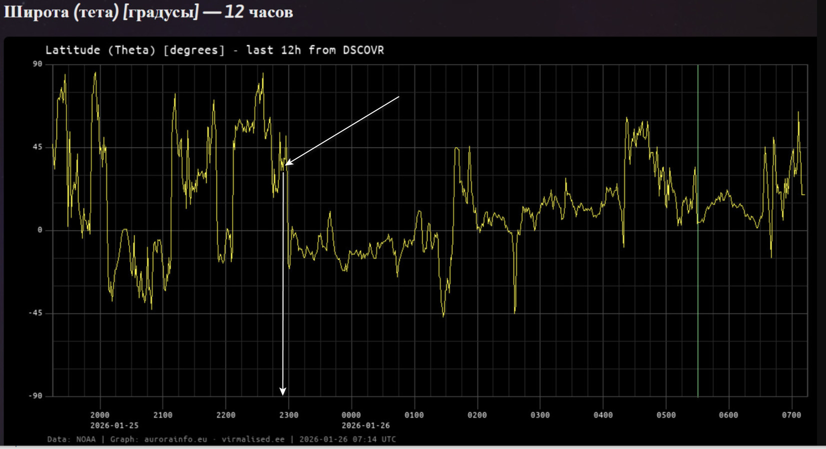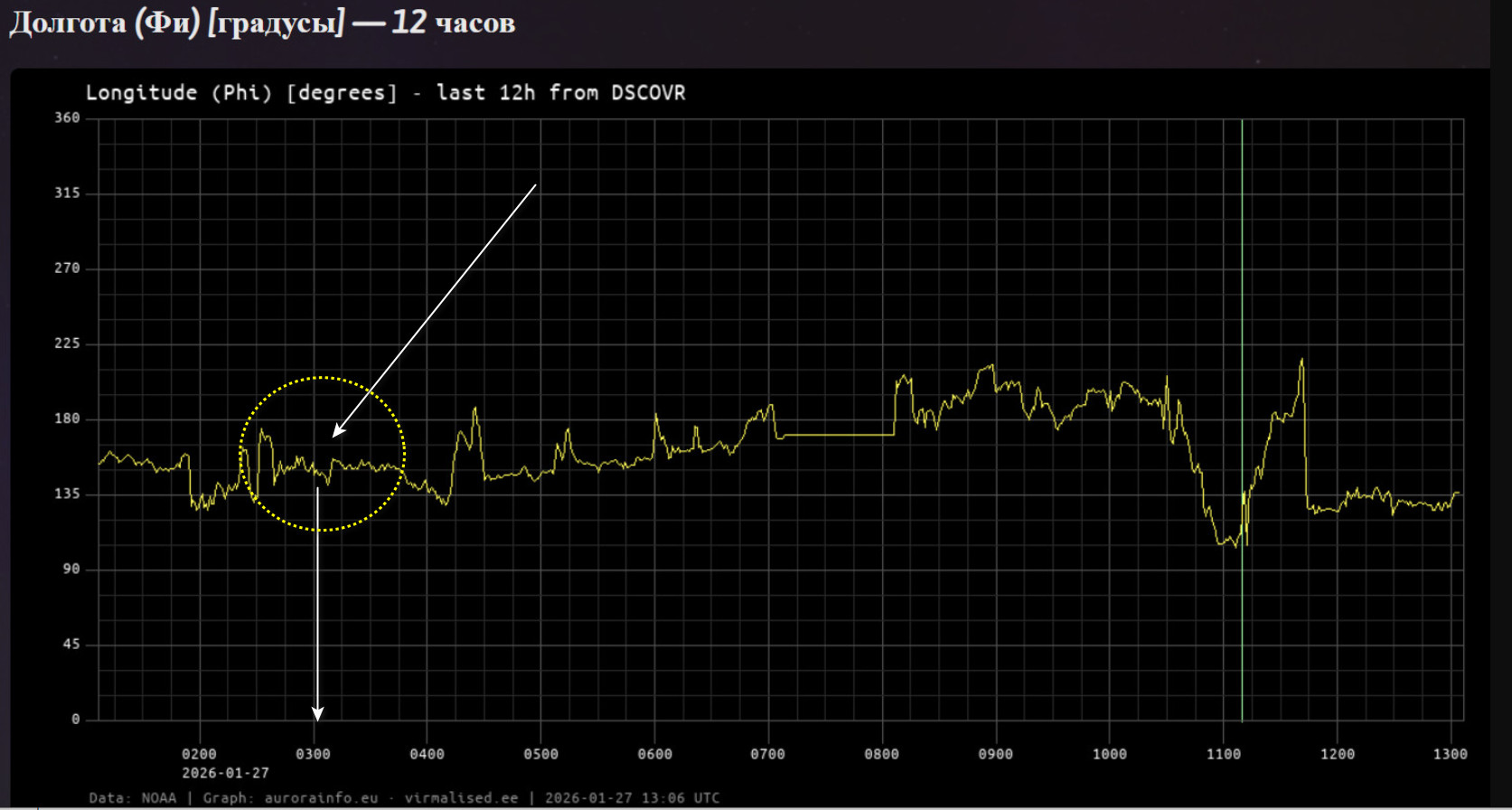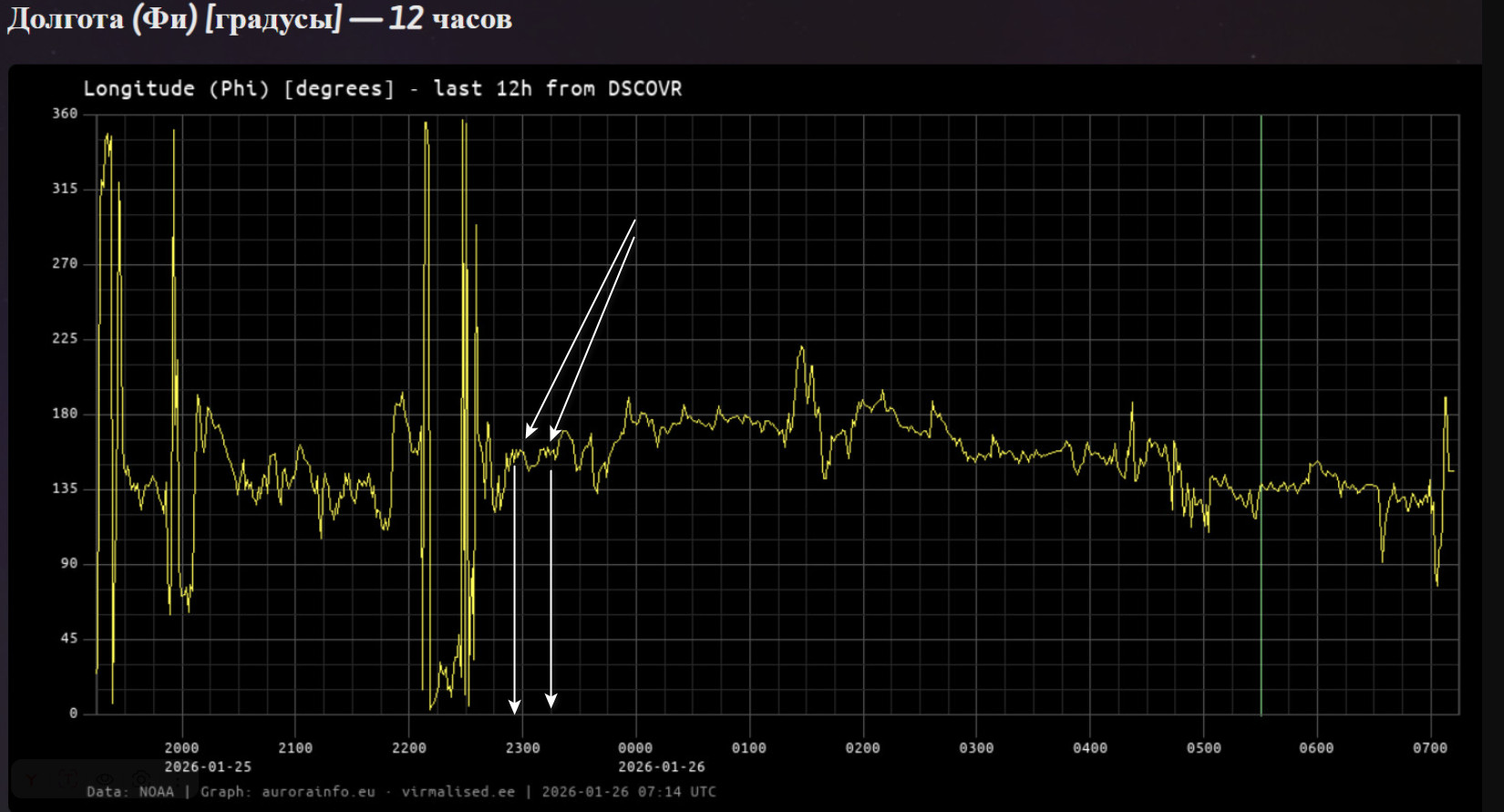 По факту прошел выхлоп вулкана Шивелуч 23:20 по Гринвичу 7 февраля( по Камчатке — 11:20 8 февраля) Величина угла Фи за 14 суток суток указывала на Камчатку.