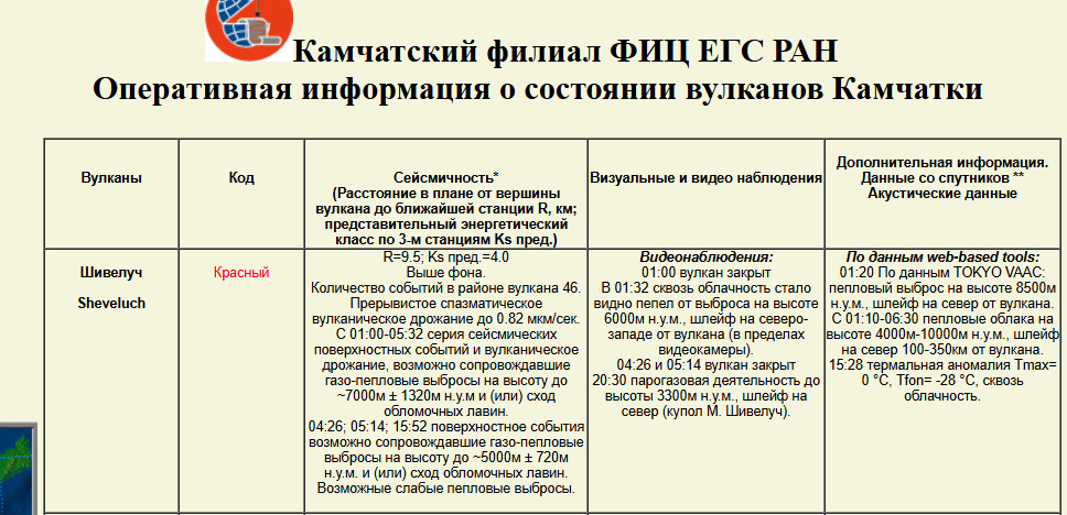 Шивелуч отработал спустя сутки , 2 февраля, прогнозом не занимался.