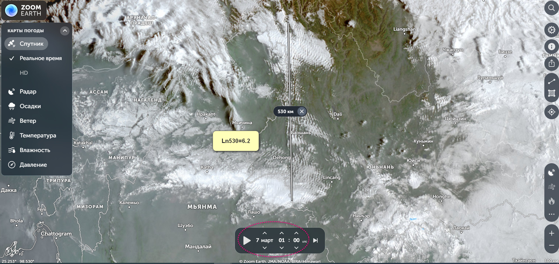 На 10 марта, 07:12 по Гринвичу напряг по границе Мьянма/ Китай, магнитуда в пределах М6.2.