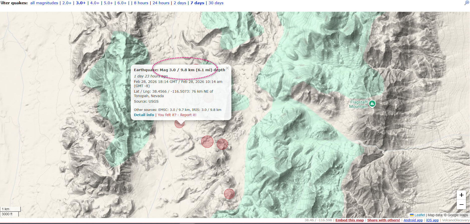 На полигоне Невада(штаты) 28 февраля в период с 18:14 по Гринвичу (первый взрыв, глубина 7.9км) по 18:17 (второй взрыв, глубина 9.8км ) произведены испытания ядерного оружия. Взрывы произошли на глубине — не характерной для прохождения землетрясений. После их прохождения последовала серия афтершоков.