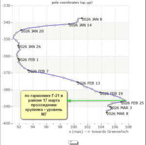 Как и предполагал, на 7 марта произошла разъюстировка солнечного монодиполя сопровождаемая ростом скорости солнечного ветра и ростом величины напряжённости МПЗ — магнитных бурь на Земле. В отношении пропущенных змт: идёт работа по поиску точного времени прогнозируемых событий, пока есть прогресс. Без этого невозможно построения всего прогнозного алгоритма. Работаем.