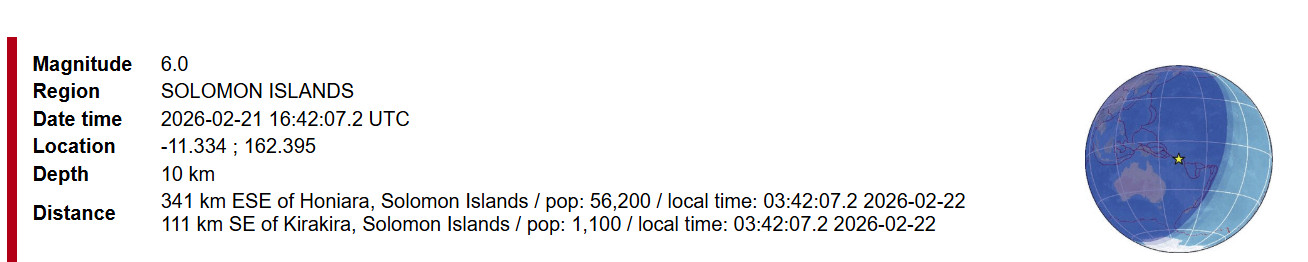 21.02. М6+ М6 Соломоновы острова , прогнозный меридиан по углу Фи требует проработки.