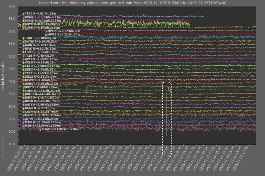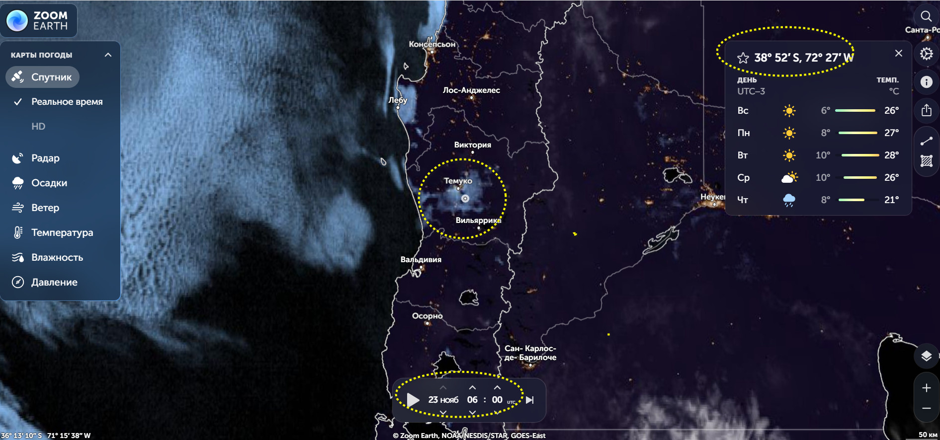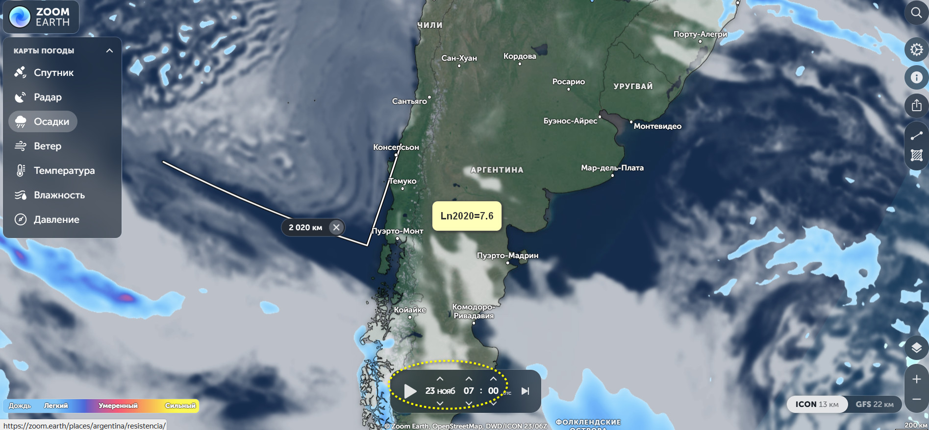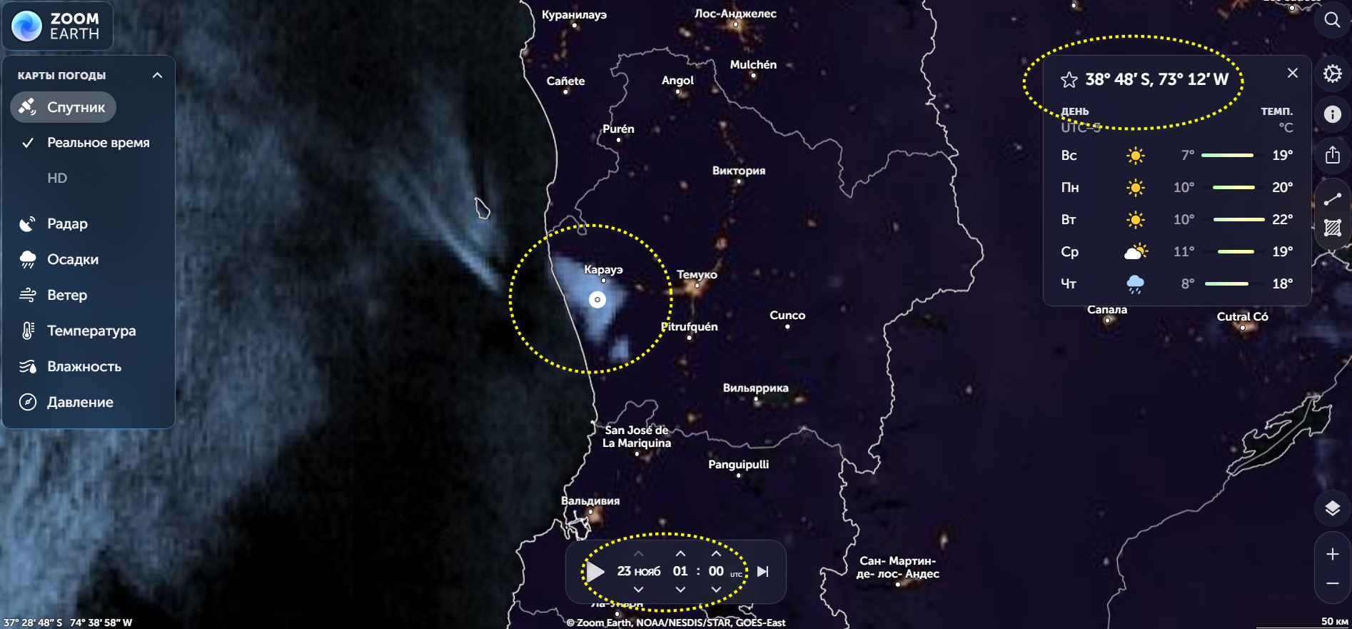 По текущим меткам на 24.11.2025 года, 14:15 по Гринвичу, прохождение контрольной точки по Чили, район координат 38.5S 72.3—>73.1W, магнитуда М7.6. Прогноз от Алексея Зеленоглазова — на ближайшую неделю.Будем посмотреть))