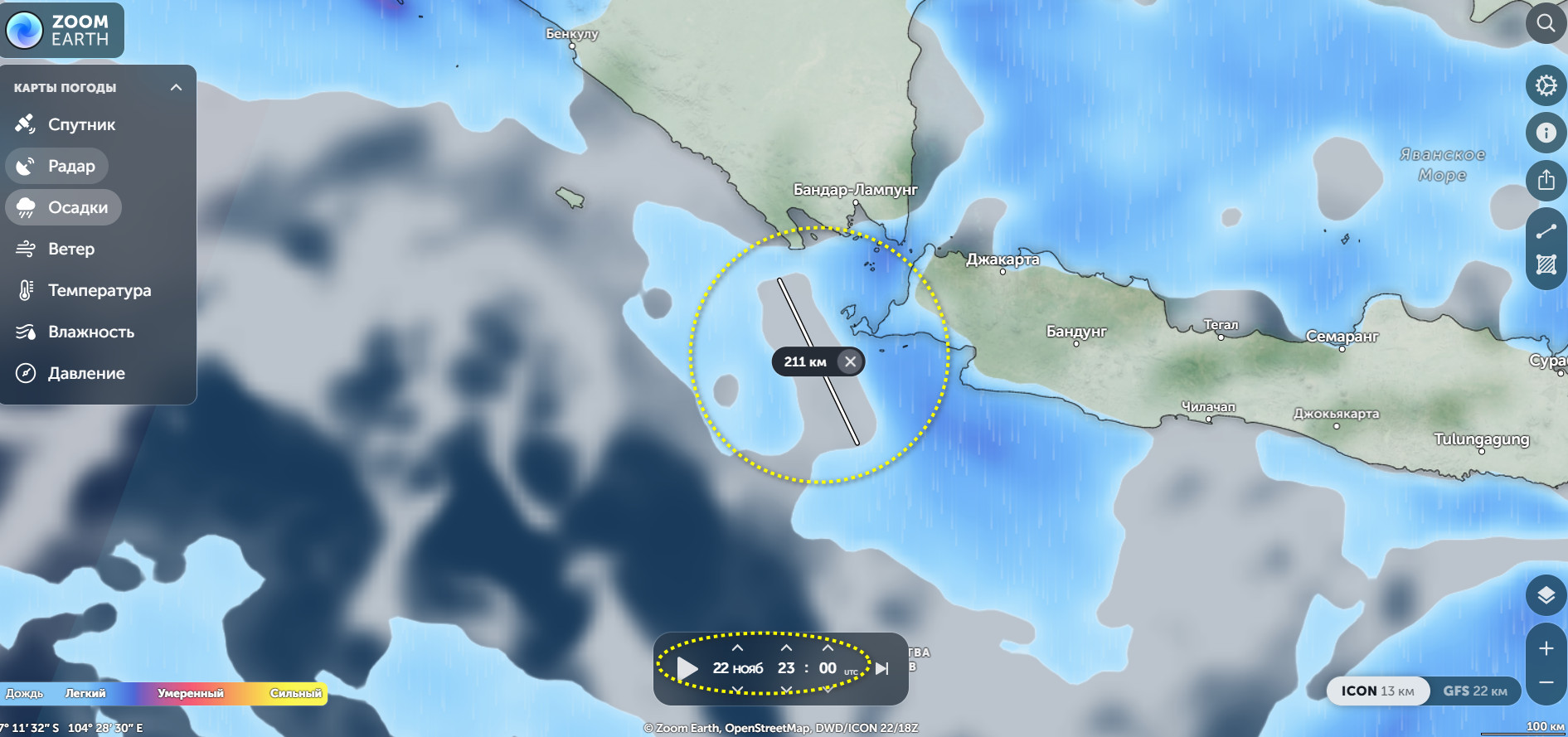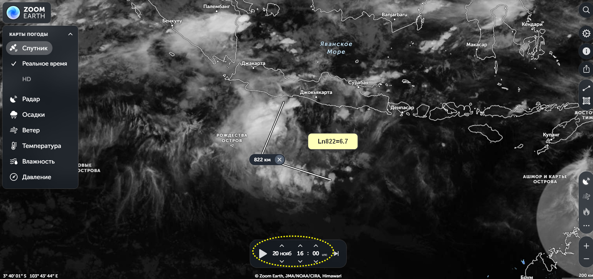 К югу от о.Ява, район координат 10.4S 112.2E, 21.11.2025 года, 18:06 по Гринвичу, магнитуда в пределах М6.7. При не прохождении прогноза в течении 20 минут, угроза снимается.