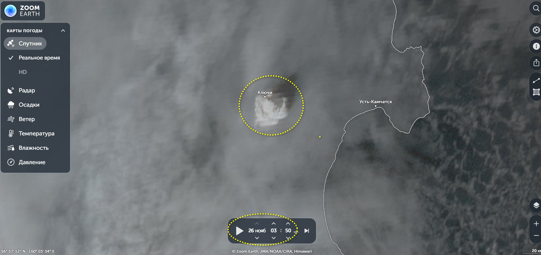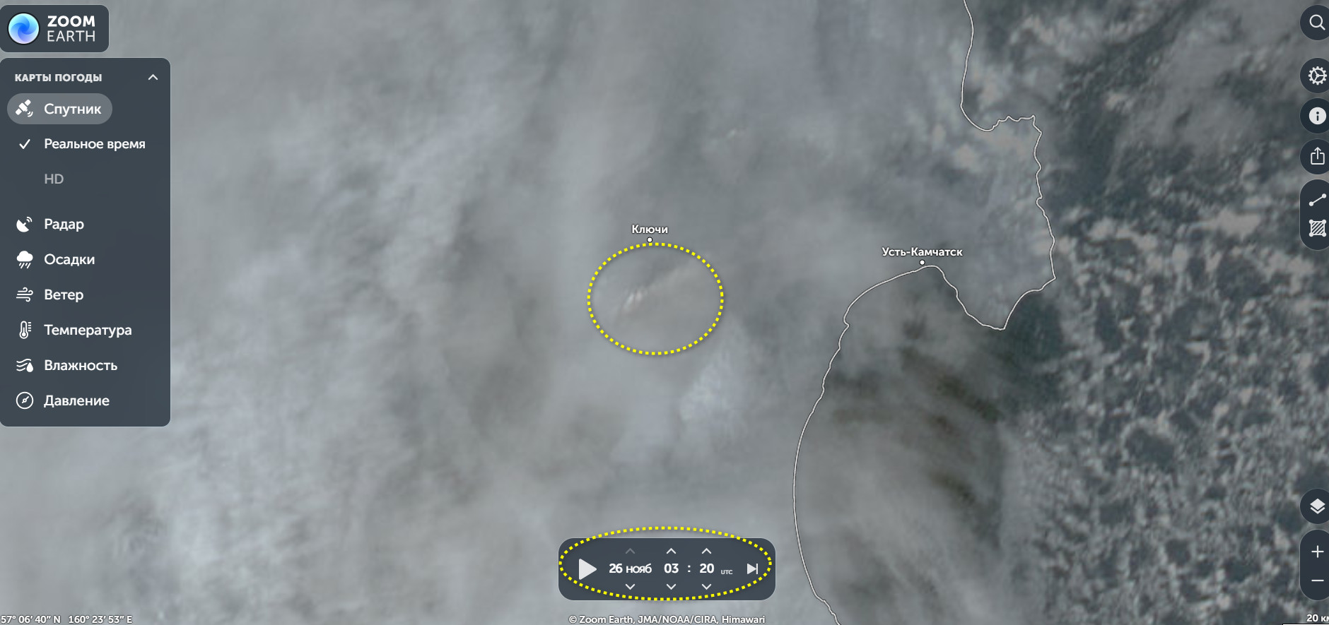 На 25 ноября , в районе 10:00 ПЛЮС по камчатскому времени существует опасность извержения вулкана Безымянный, Камчатка.