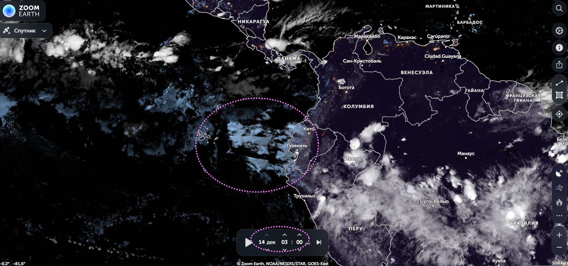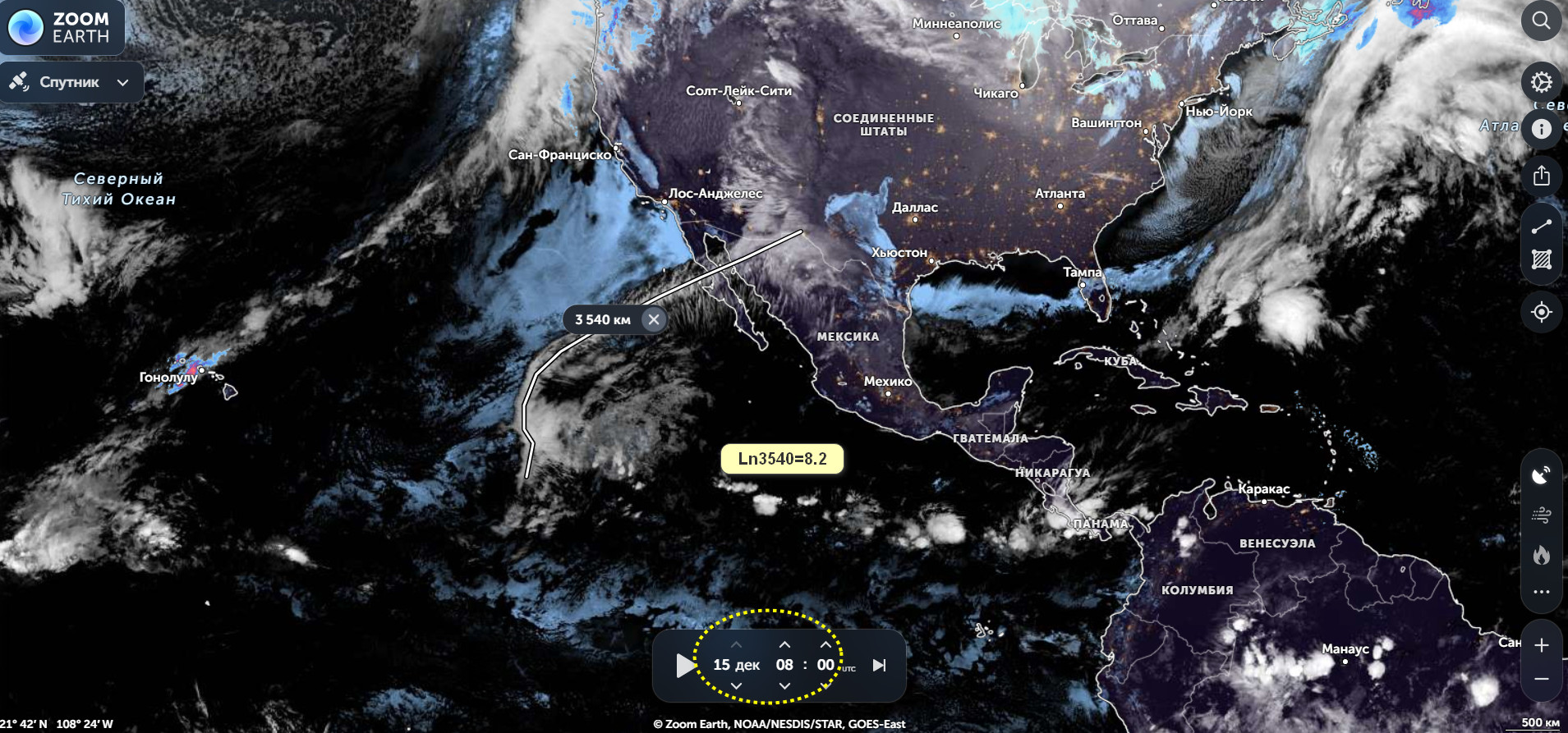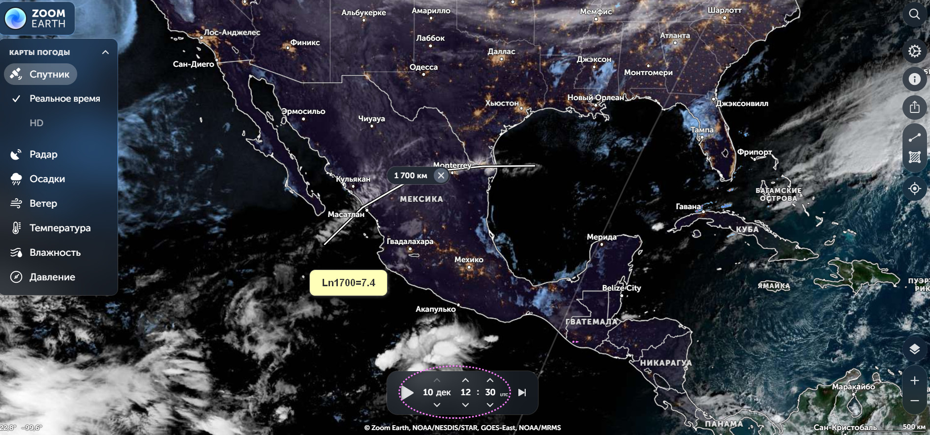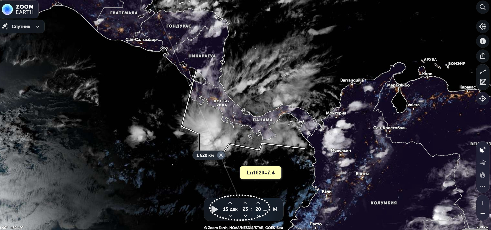 Момент формирования гравиворонки на 23:20 по Гринвичу , 15 декабря, центральная Америка.