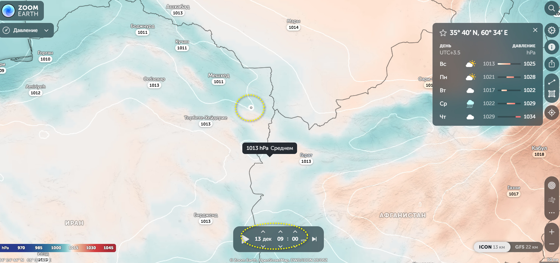 Момент формирования гравиворонки на 16 декабря 22:00 по Гринвичу.