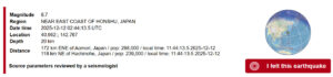 13->14.12. М6->М7 Япония М6.7. Прогнозное окно с суточной погрешностью отработало.