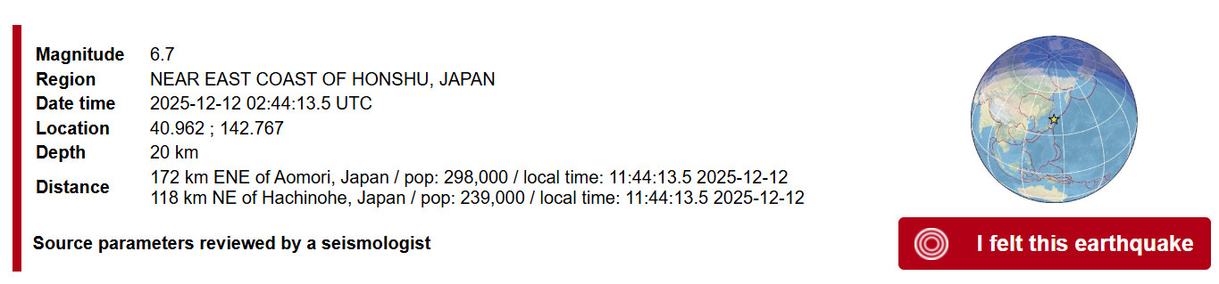 По Японии выявлены ОСТИ на магнитуду М6.6. , похоже на афтершок.