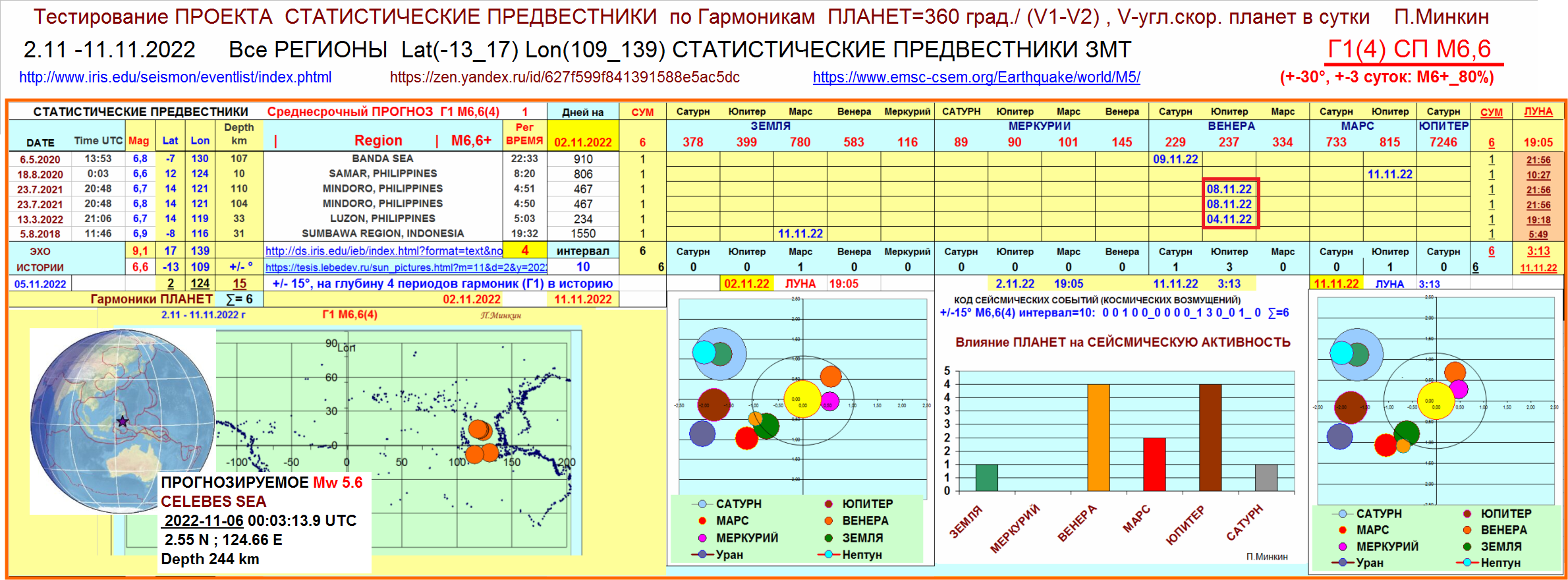 Прогноз. Папуа-Новая Гвинея, район координат 6.5S 146.5E, 05.11.2020 года, 10:30 по Гринвичу,магнитуда М6.6. При не прохождении прогноза в течении 30 минут , угроза снимается.
