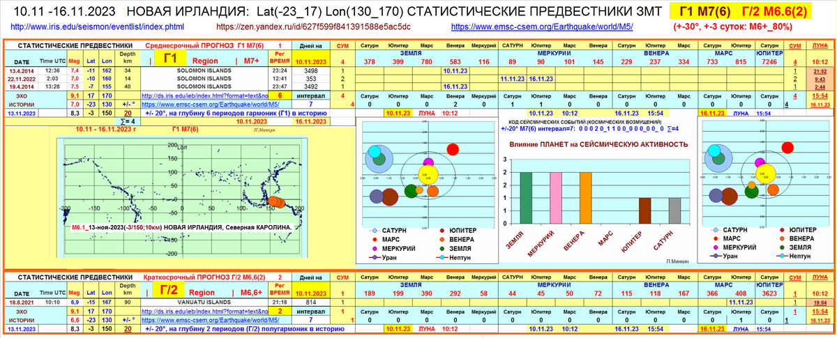 В фокусе на ближайшее время, 05:42 по Гринвичу, 13.11.2023 года, с магнитудой М6.2, Гватемала, район координат 16.6N 89.6W. При не прохождении прогноза в течении 30 минут , угроза снимается.
